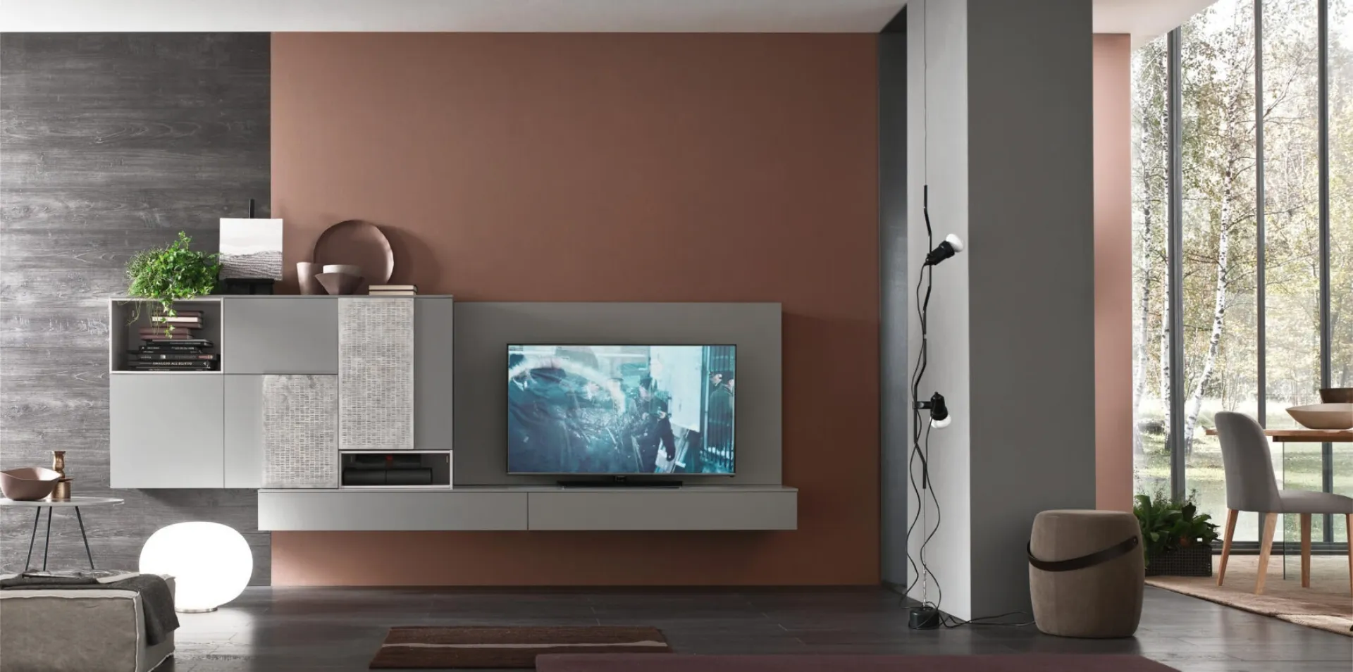 Attraverso un gioco dinamico di accostamenti fra accessori a giorno o vani chiusi, le Pareti Attrezzate moderne arredano il living usufruendo al meglio di ogni spazio. Le Pareti Attrezzate hanno conquistato un posto fondamentale nella zona giorno delle nostre case: sono mobili plurifunzionali e salvaspazio sempre realizzabili su misura. Questa parete attrezzata è una delle soluzioni dell'azienda e ti permetterà di allestire il living seguendo le più particolari problematiche abitative.